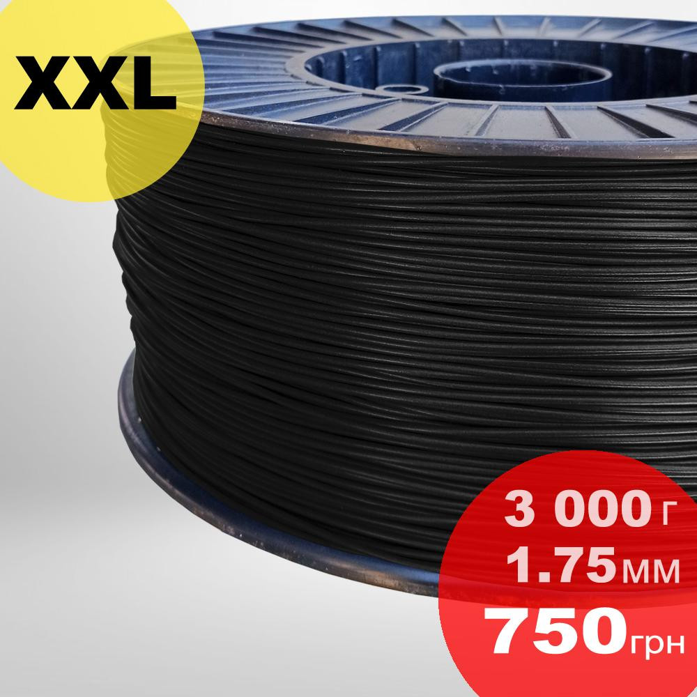Черный филамент PET-G от производителя 3dplastic диаметром 1,75 мм и катушкой 0.85 кг. Наш...